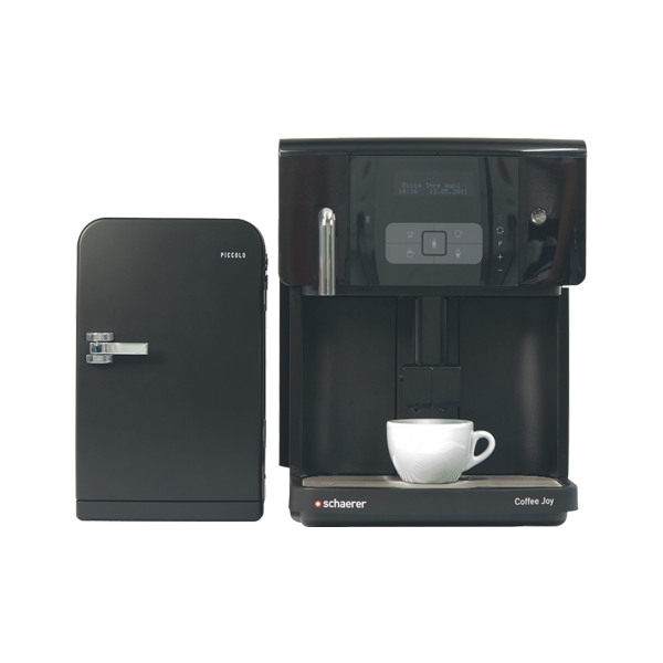 Schaerer Joy tam Otomatik kahve makinesi sütlük dahil. Bir düğmeye dokunarak 5 farklı içecek sunumu ve mükemmel kahve kalitesi. Saatlik / günlük 30 - 50 bardak çıkışı. Yalnızca 30,5 cm genişliğiyle Schaerer Coffee Joy, tam otomatik kahve makineleri serimizin en küçüğüdür.